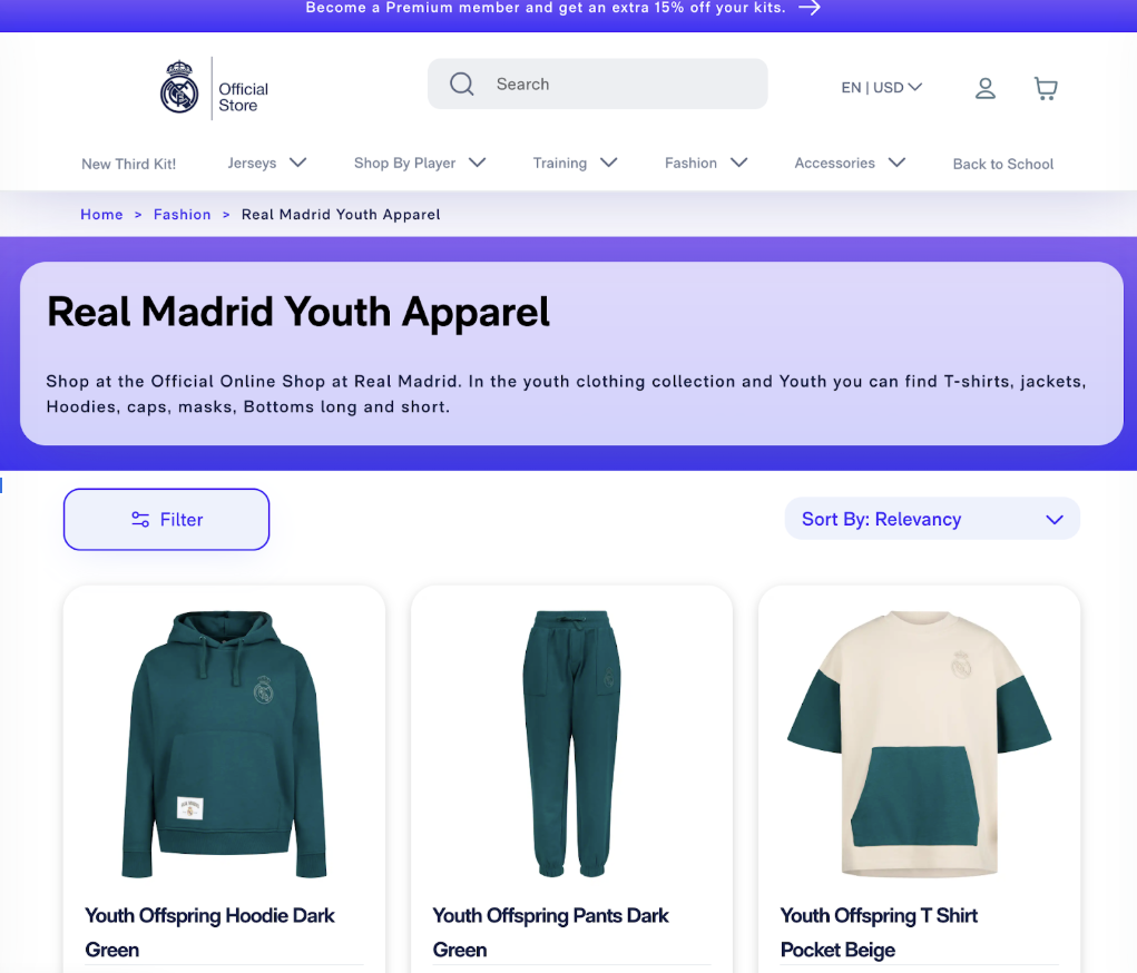 Las Fanshop Europeas están muy apalancadas en Ecommerce, y el gran número de competencias y partidos, generan más ocasiones de uso de las prendas del equipo, algo que puntualmente en Colombia está en proceso de crecimiento.